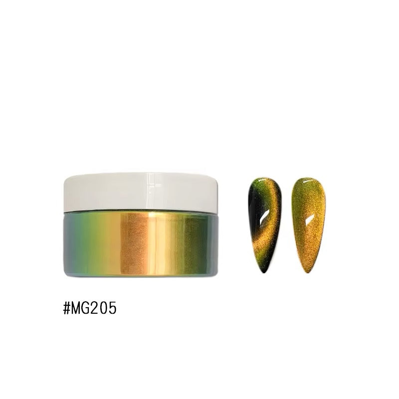 💫 Effet cat eye : Mélangez avec une base gel transparente, appliquez sur l’ongle, puis utilisez un aimant pour révéler l’effet cat eye avant de catalyser